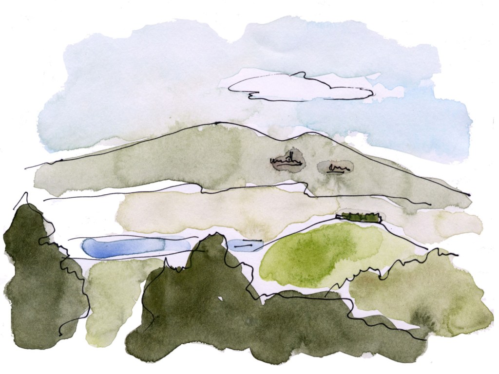 Quando mi trovo ad affrontare il disegno paesistico (come lo chiamavano gli impressionisti), quello della natura – eseguito “en plein air” – non riesco a trattenere il pennello da colpi inconsulti, rapidi, imprecisi. Schizzi di colore che trovano posizione da sè nel foglio. Sono talmente ridotti all’osso da sembrare un maldestro astrattismo o il disegno di un bambino. Chissà, forse per cogliere l’impressione di un attimo del paesaggio non riesco a disegnarlo in modo migliore o diverso.